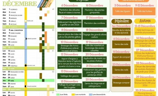Calendrier de décembre des plantations et travaux de jardinage à Chanteloup-les-Vignes.…
