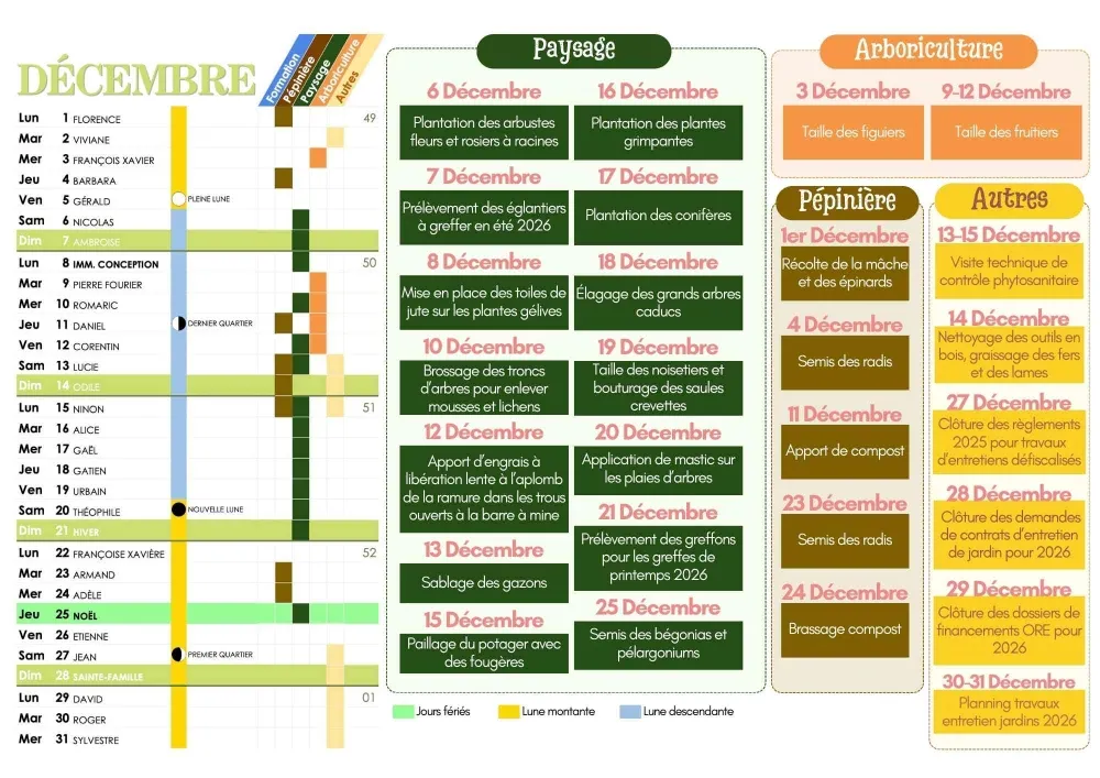 Calendrier de décembre des plantations et travaux de jardinage à Chanteloup-les-Vignes